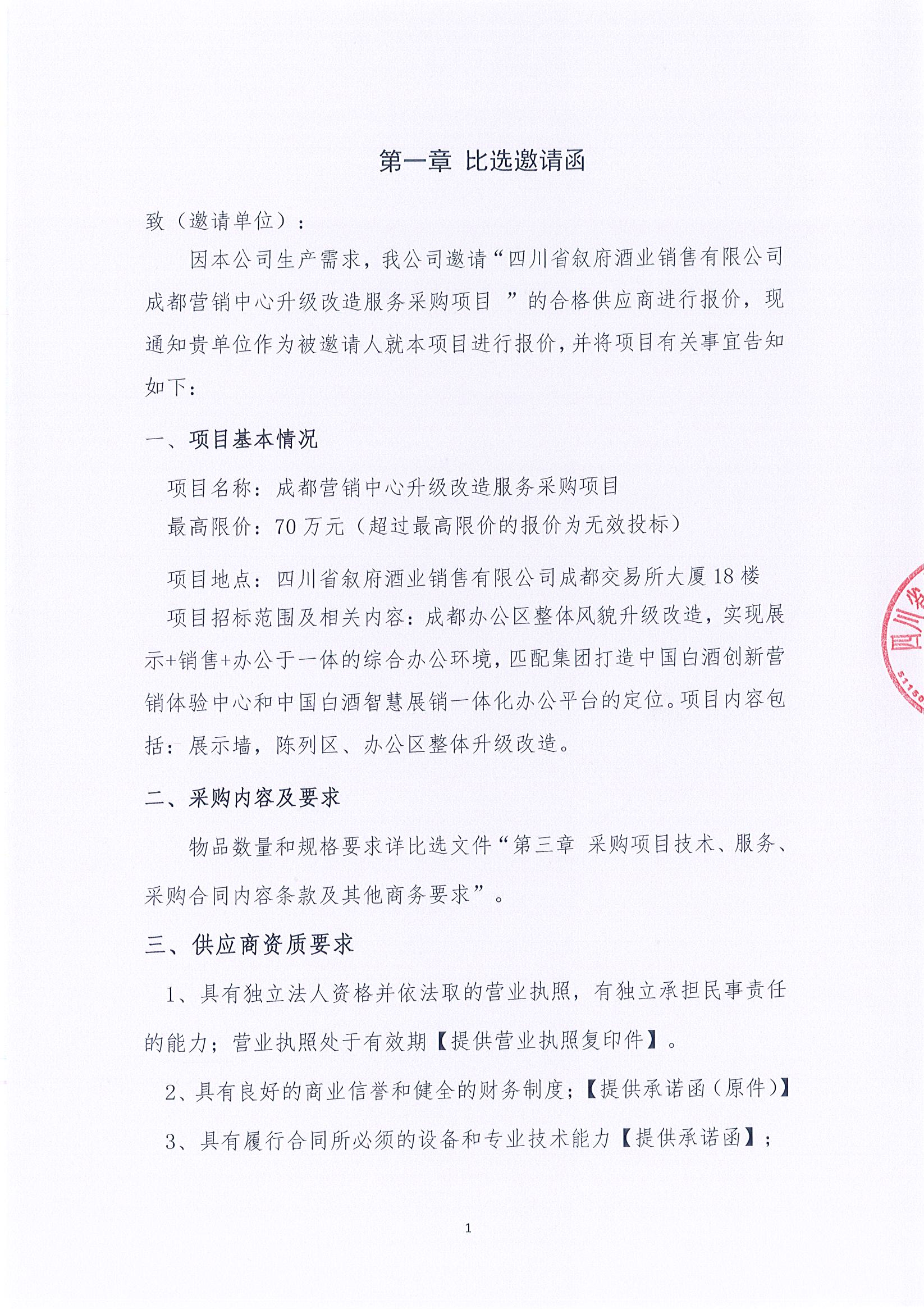 四川省敘府酒業(yè)銷(xiāo)售有限公司2025年敘府酒業(yè)價(jià)值共創(chuàng )大會(huì )搭建及服務(wù)采購項目比選邀請函
