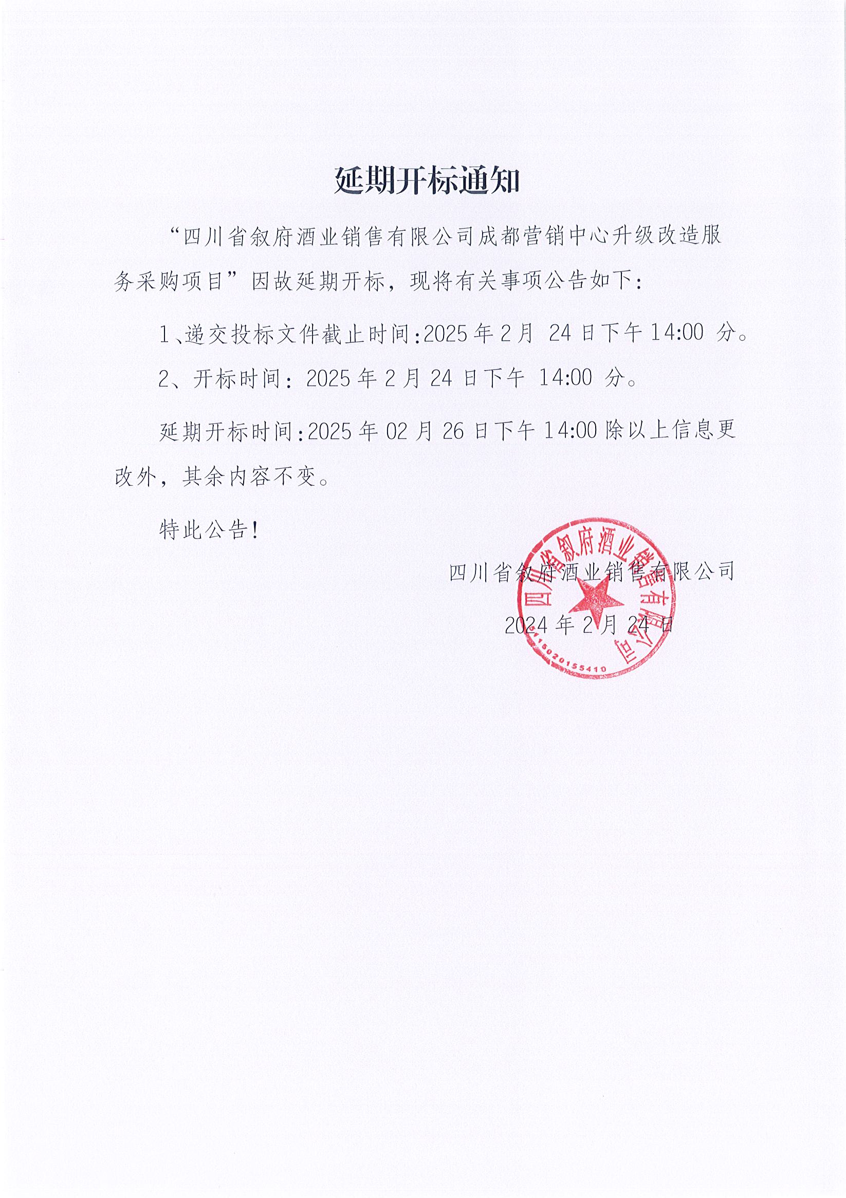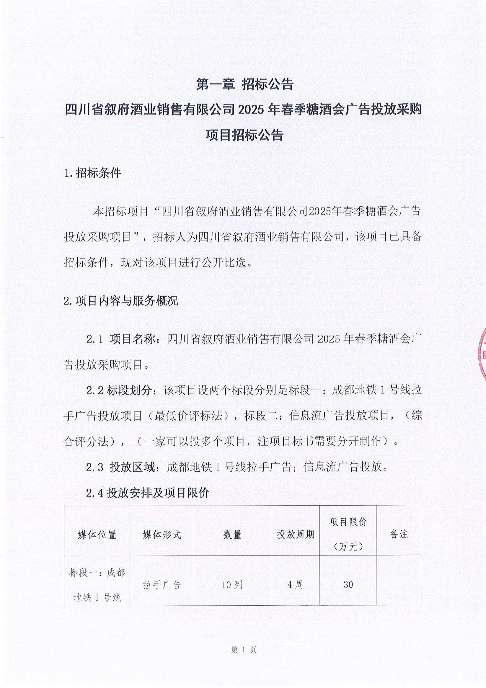 四川省敘府酒業(yè)銷(xiāo)售有限公司2025年春季糖酒會(huì )廣告投放采購項目招標公告