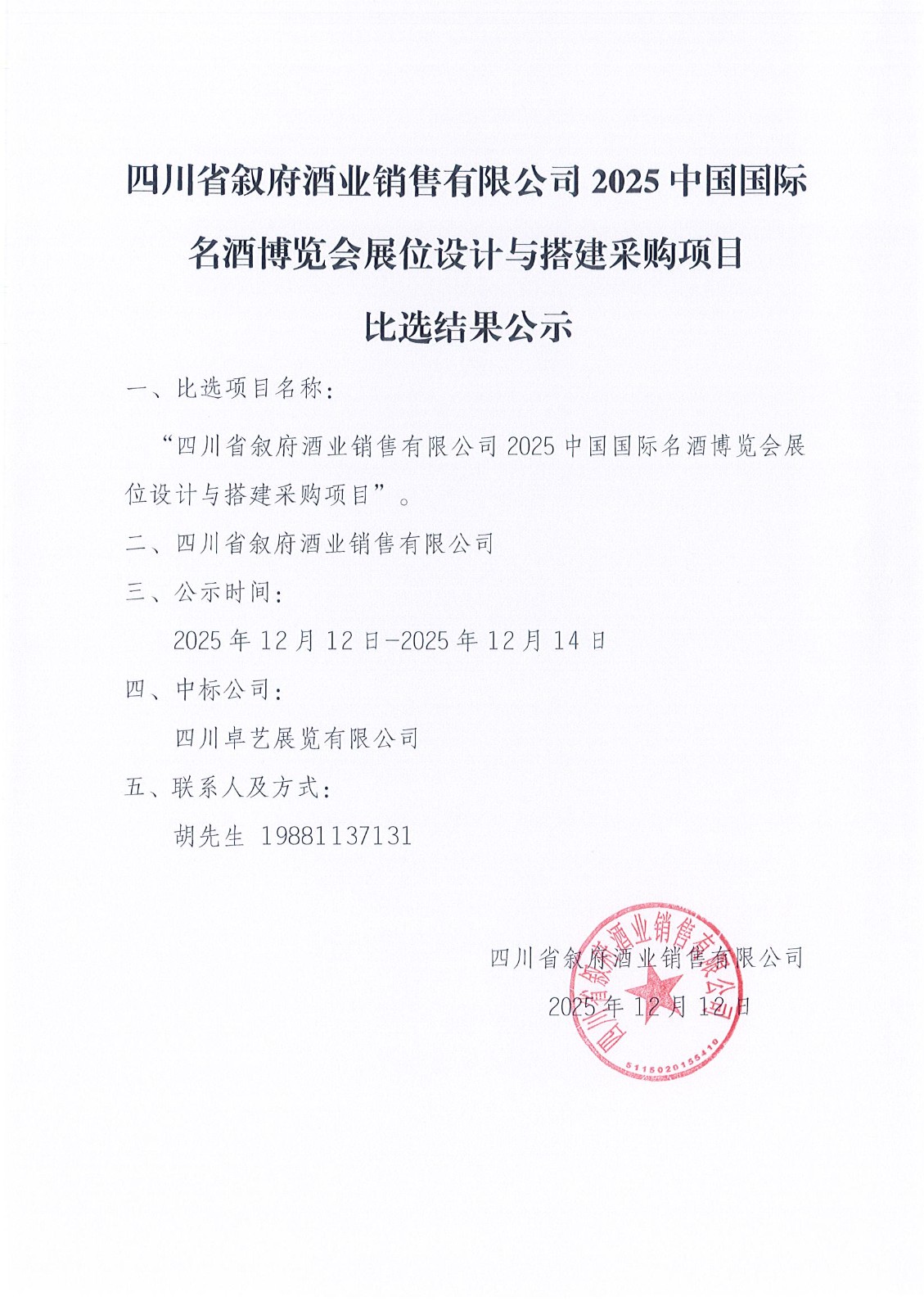 四川省敘府酒業(yè)銷(xiāo)售有限公司敘府品牌跨年直播運營(yíng)服務(wù)項目單一來(lái)源招標公告