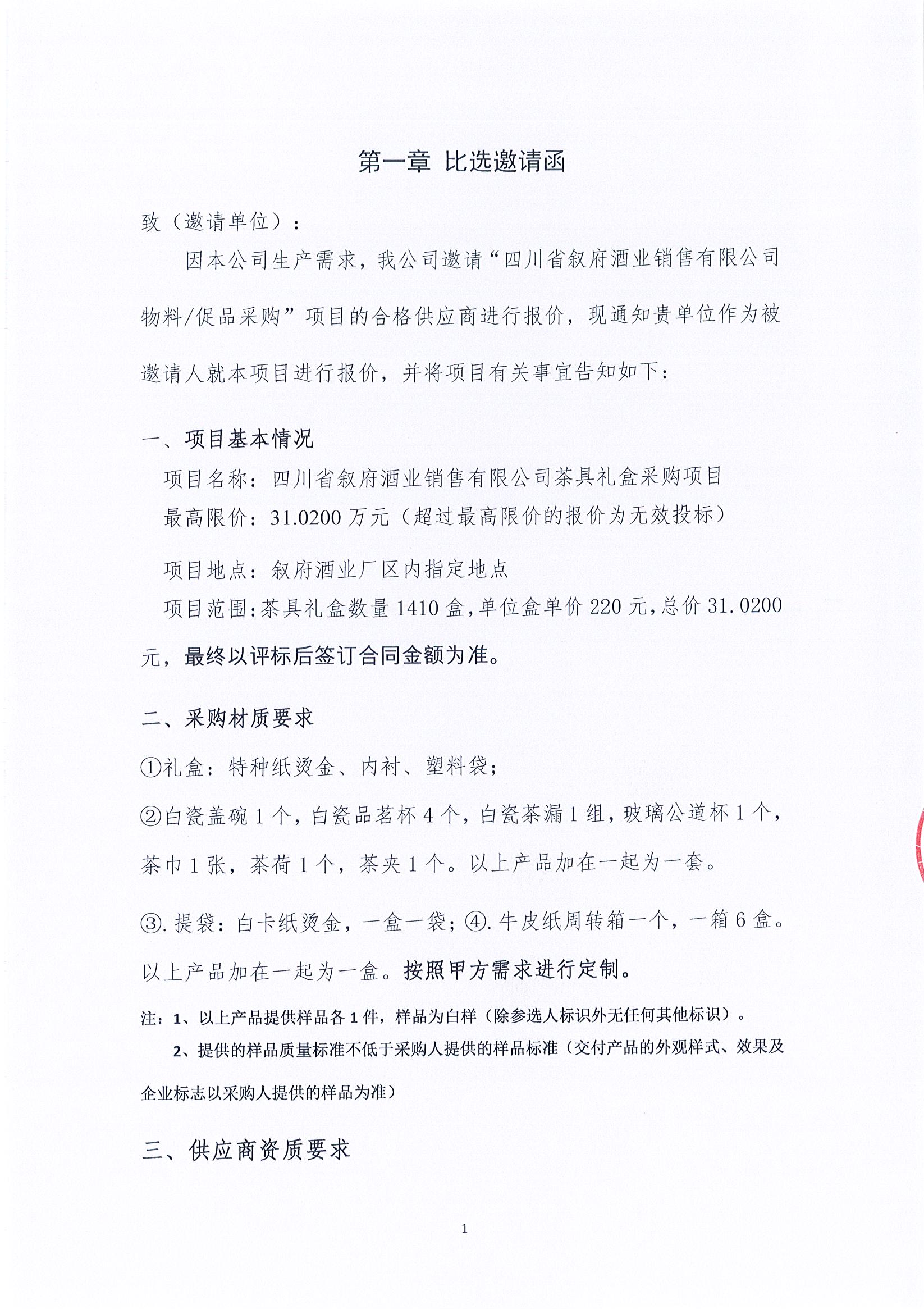 四川省敘府酒業(yè)銷(xiāo)售有限公司茶具禮盒采購項目