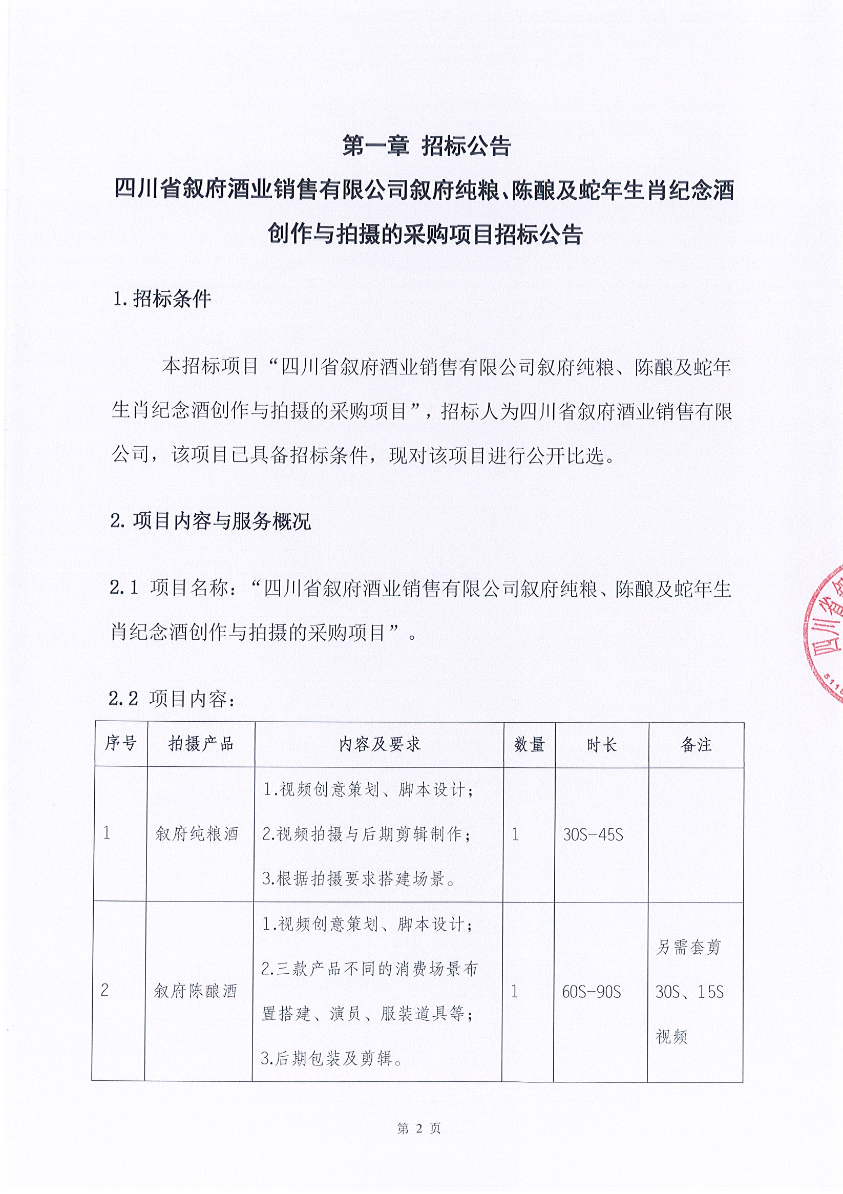 四川省敘府酒業(yè)銷(xiāo)售有限公司敘府純糧、陳釀及蛇年生肖紀念酒創(chuàng )作與拍攝的采購項目比選公示公告