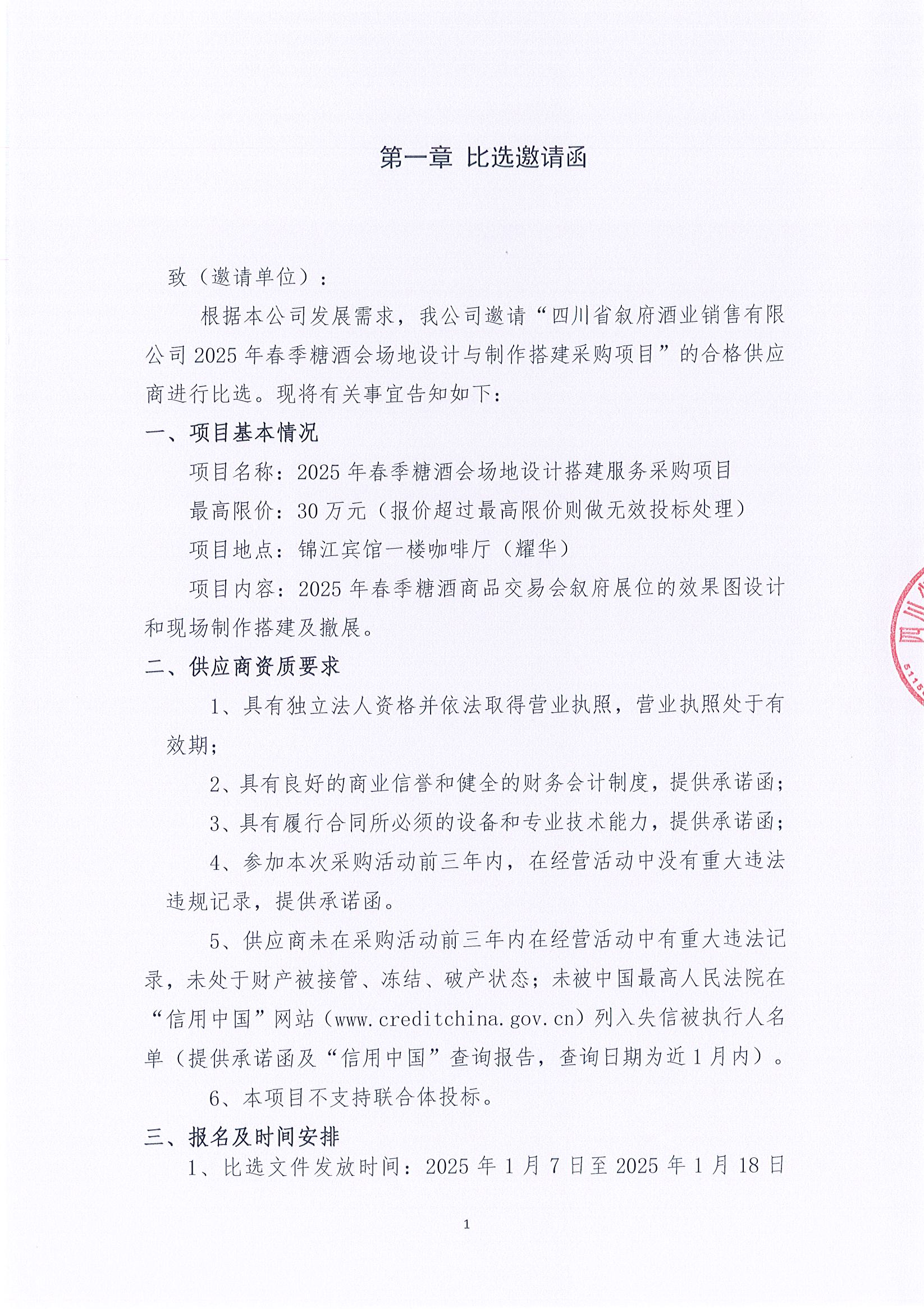 四川省敘府酒業(yè)銷(xiāo)售有限公司2025年春季糖酒會(huì )場(chǎng)地設計與制作搭建采購項目比選公示公告