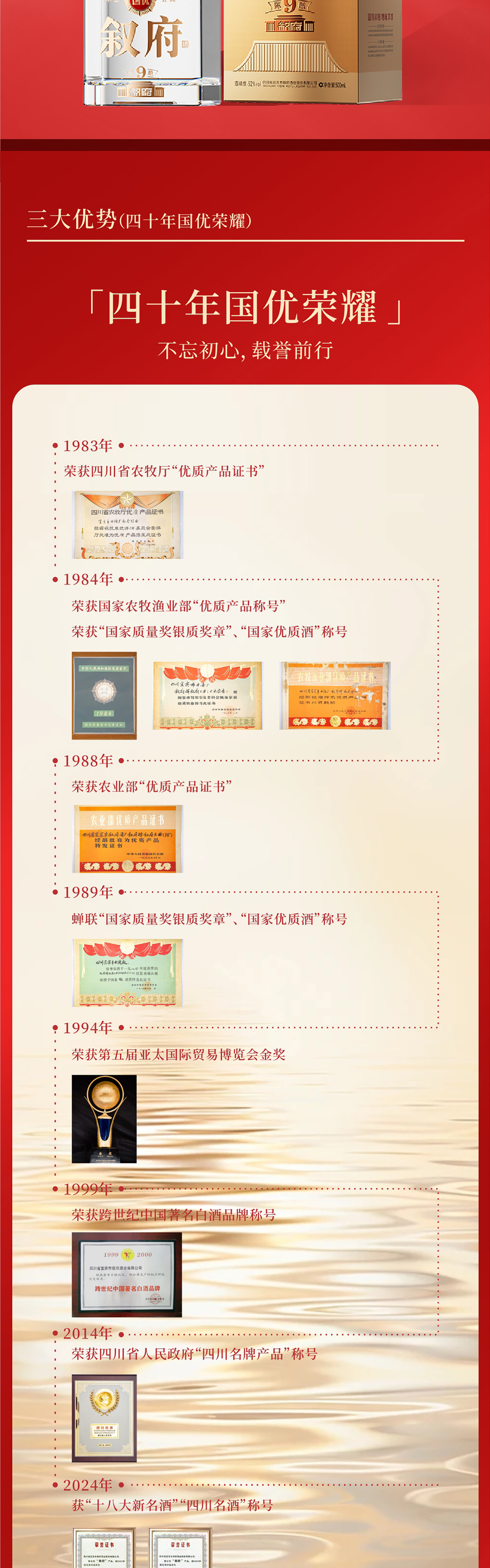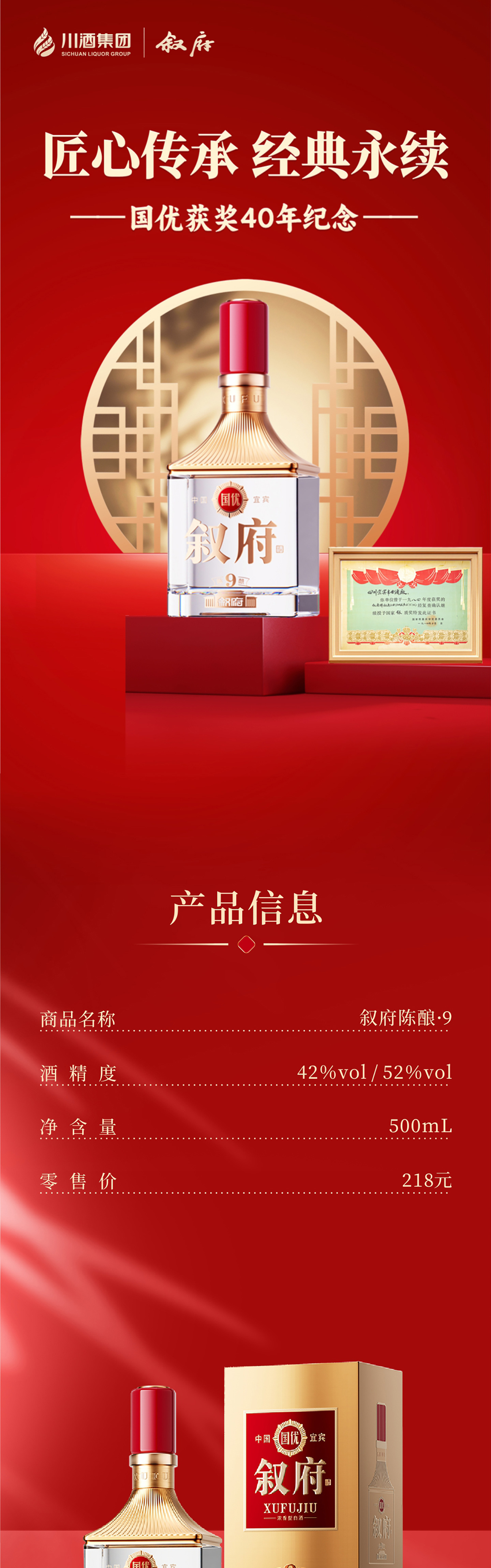 敘府陳釀,以四十年歲月堅守,融合“名優(yōu)產(chǎn)區、精釀技藝、歲月老窖,國優(yōu)品質(zhì)”,用匠心雕琢40年時(shí)光累積的豐滿(mǎn),銘刻40年國優(yōu)榮耀傳承的印記