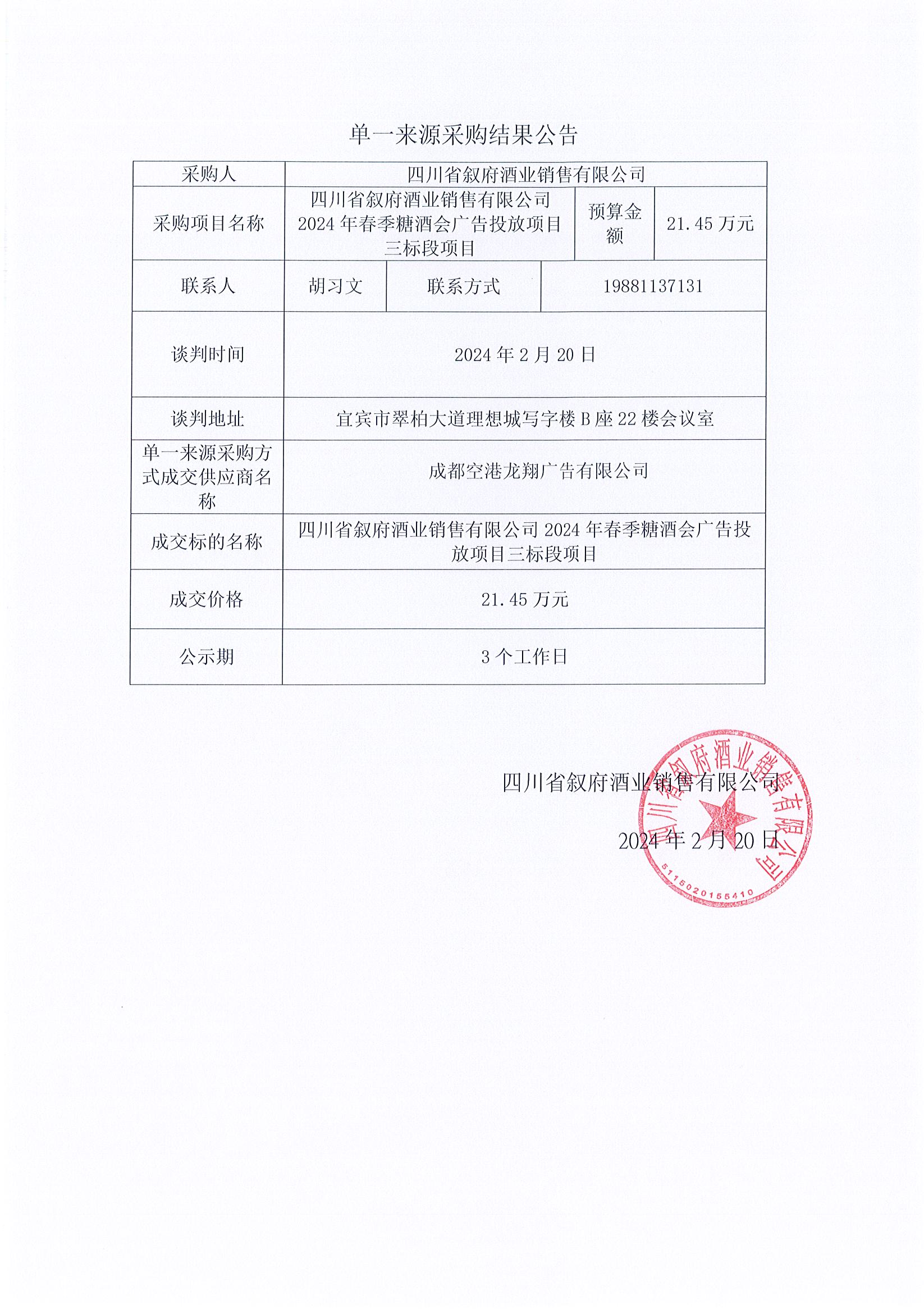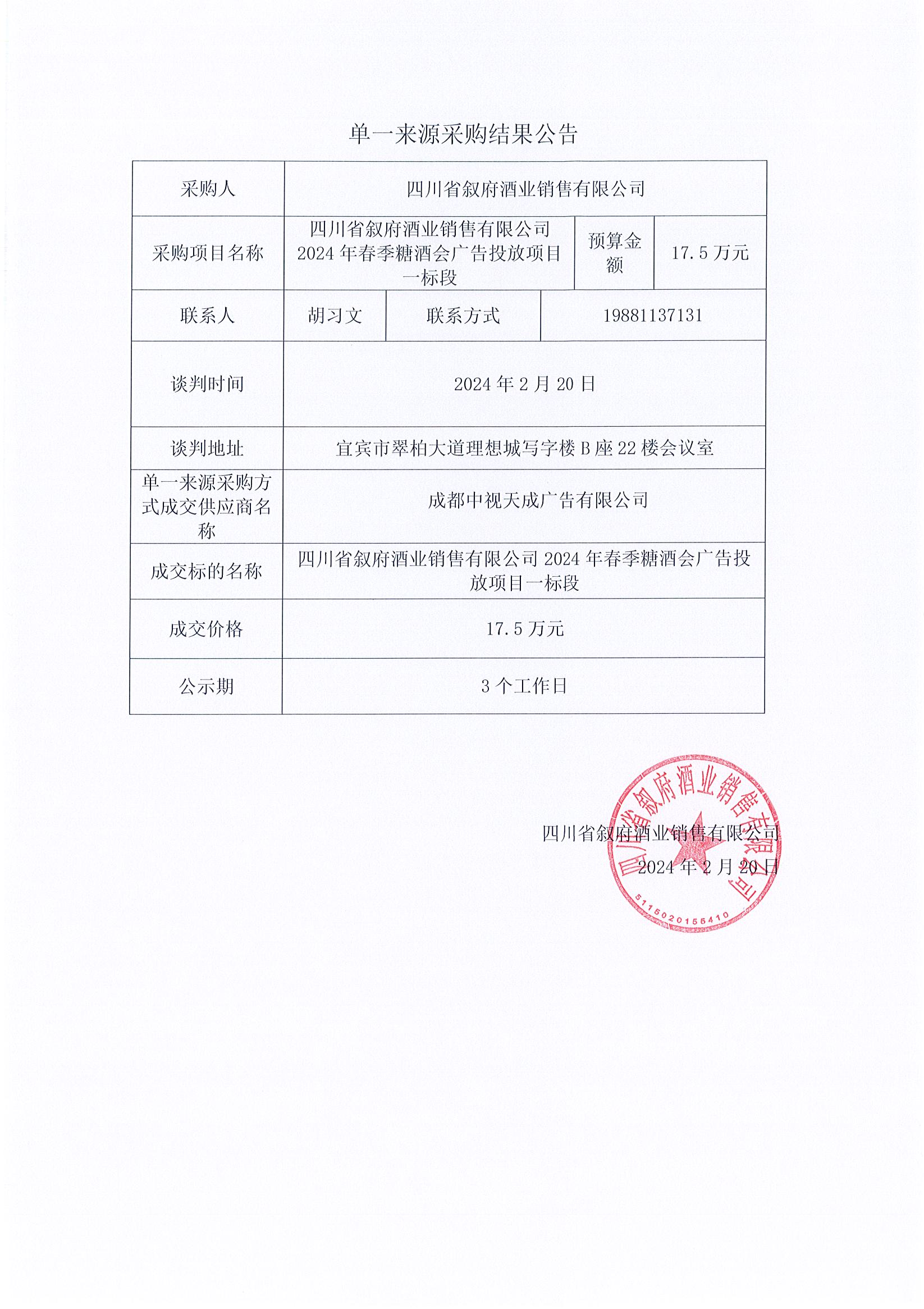 四川省敘府酒業(yè)銷售有限公司2024年春季糖酒會場地設(shè)計搭建服務(wù)采購項目中標(biāo)結(jié)果公示公告