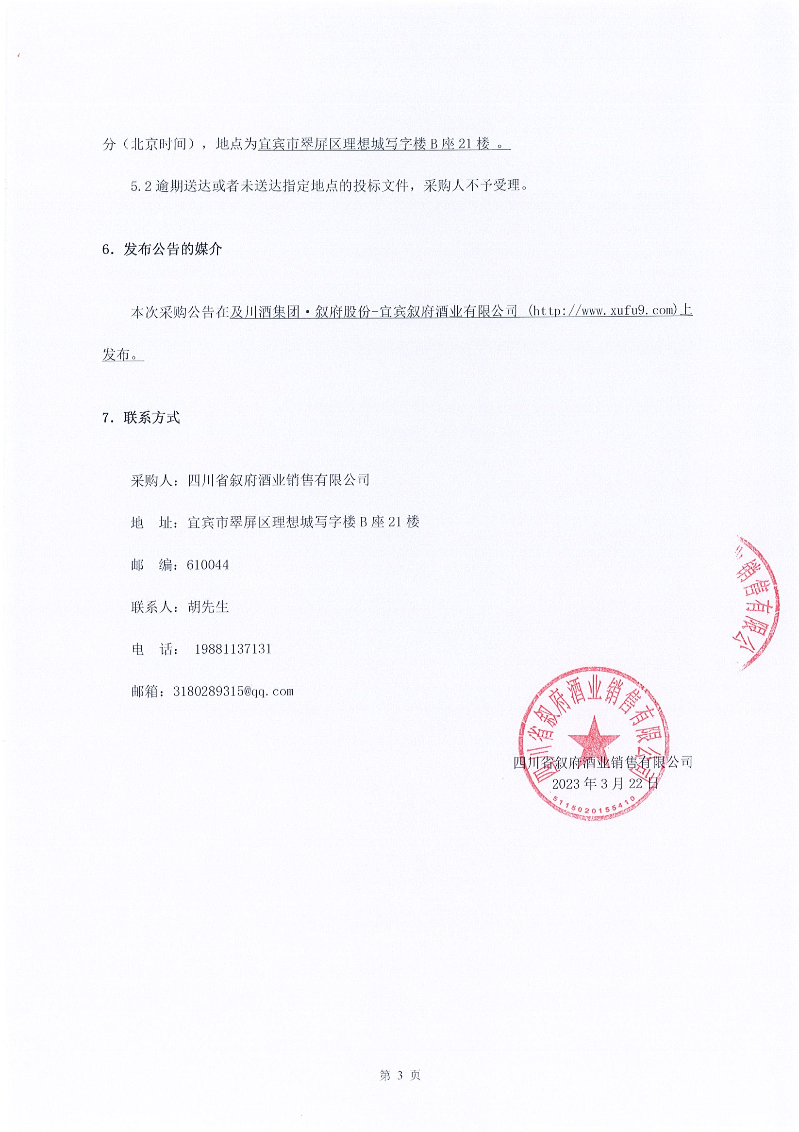 四川省敘府酒業(yè)銷售有限公司2024年春季糖酒會場地設計搭建服務采購項目(酒店展)搭建中標結果公示公告