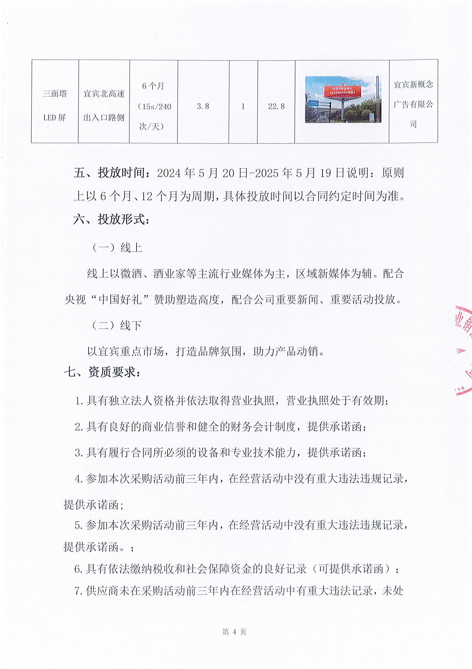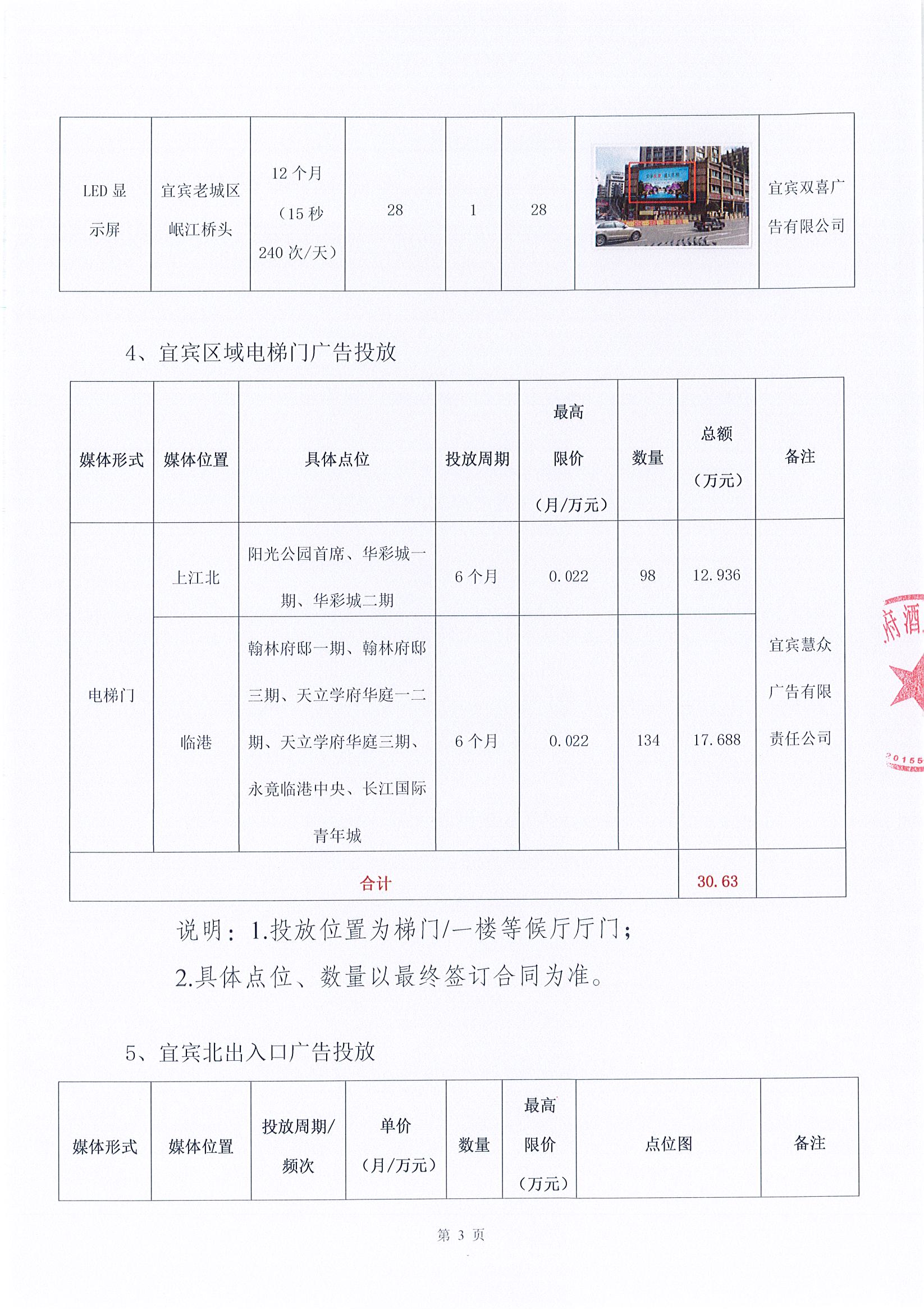 四川省敘府酒業(yè)銷(xiāo)售有限公司高速跨線(xiàn)橋/宜賓區域道閘廣告投放采購項目公開(kāi)比選公示公告
