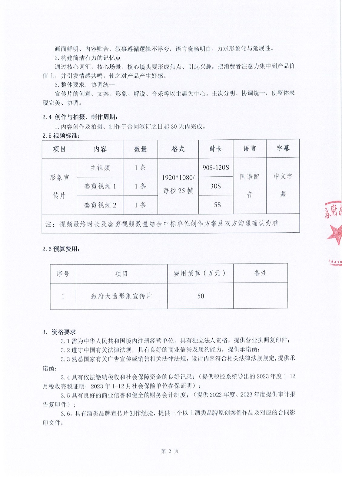 四川省敘府酒業(yè)銷(xiāo)售有限公司敘府大曲(藍標)產(chǎn)品TVC的創(chuàng )作與拍攝采購項目中標結果公示公告