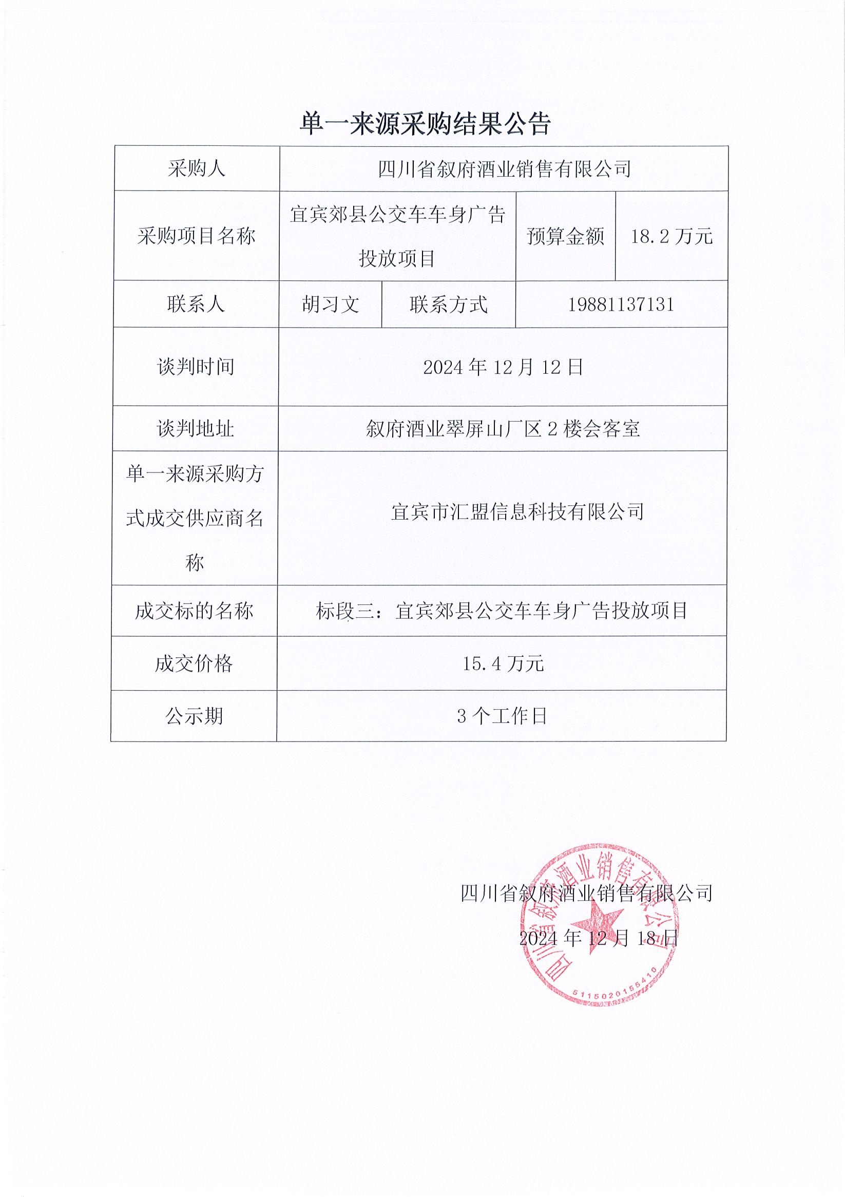 四川省敘府酒業(yè)銷(xiāo)售有限公司2024中國國際名酒博覽會(huì )展位設計與搭建采購項目比選結果公示公告
