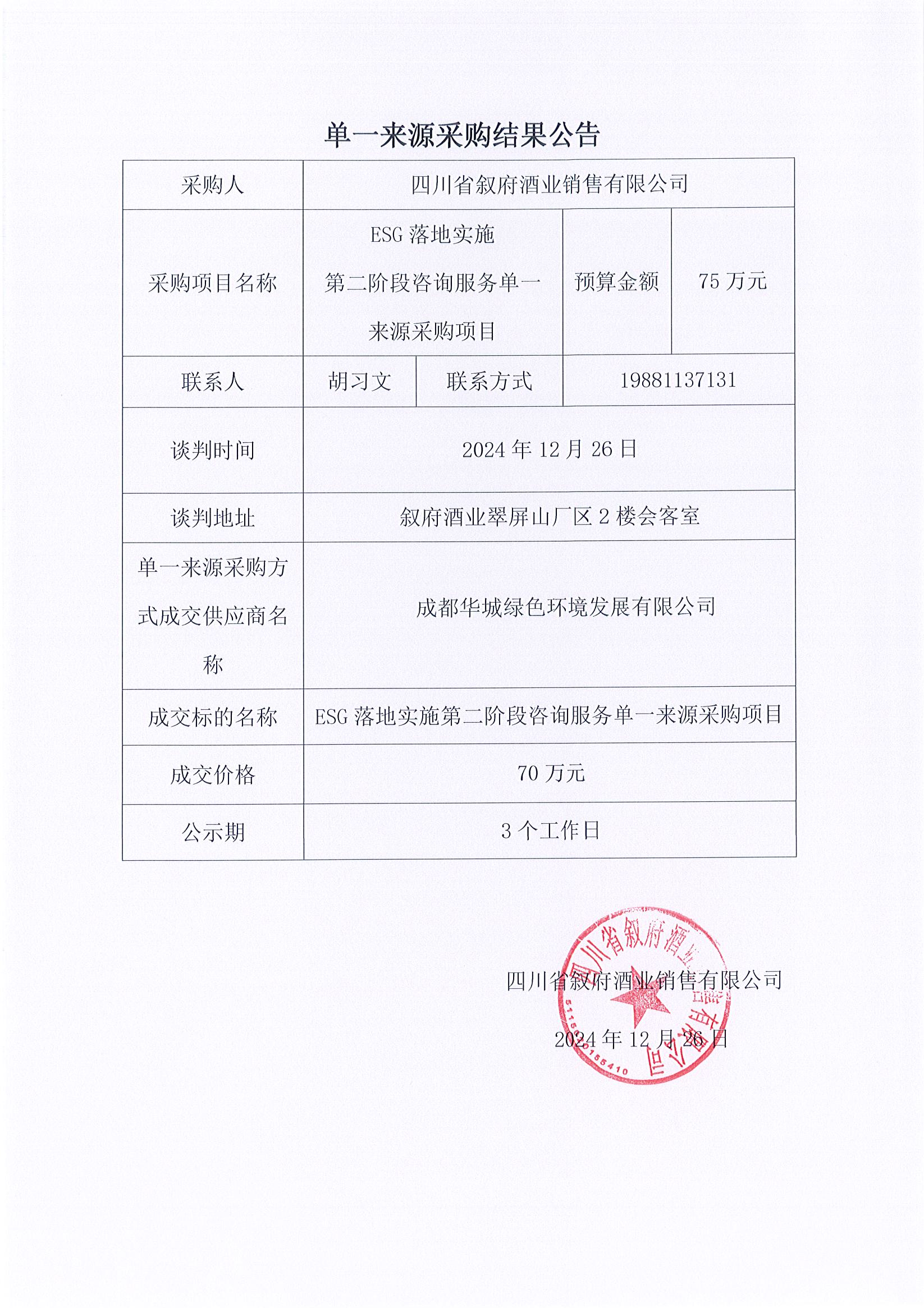 四川省敘府酒業(yè)銷(xiāo)售有限公司敘府大曲(藍標)產(chǎn)品TVC的創(chuàng )作與拍攝采購項目中標結果公示公告