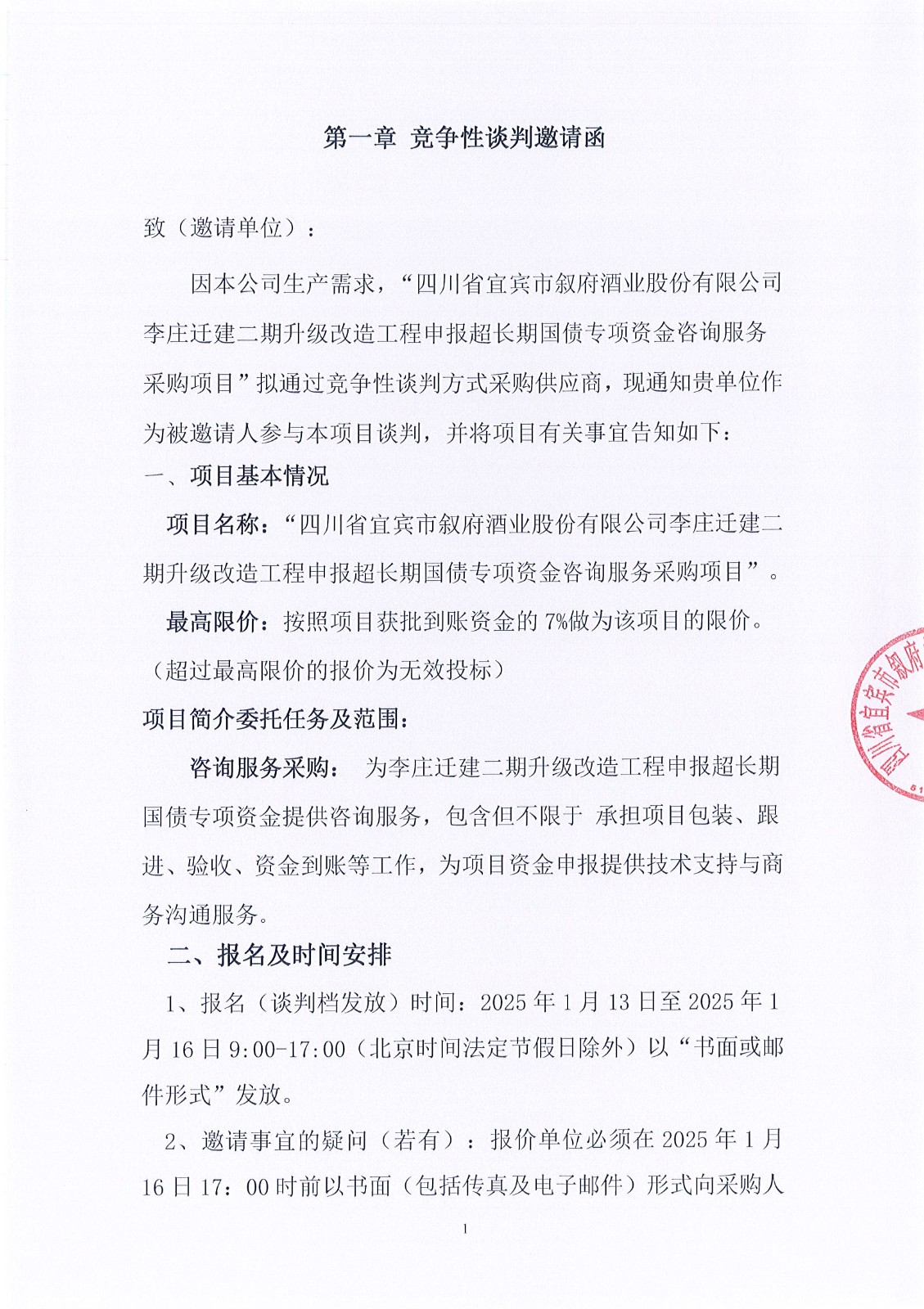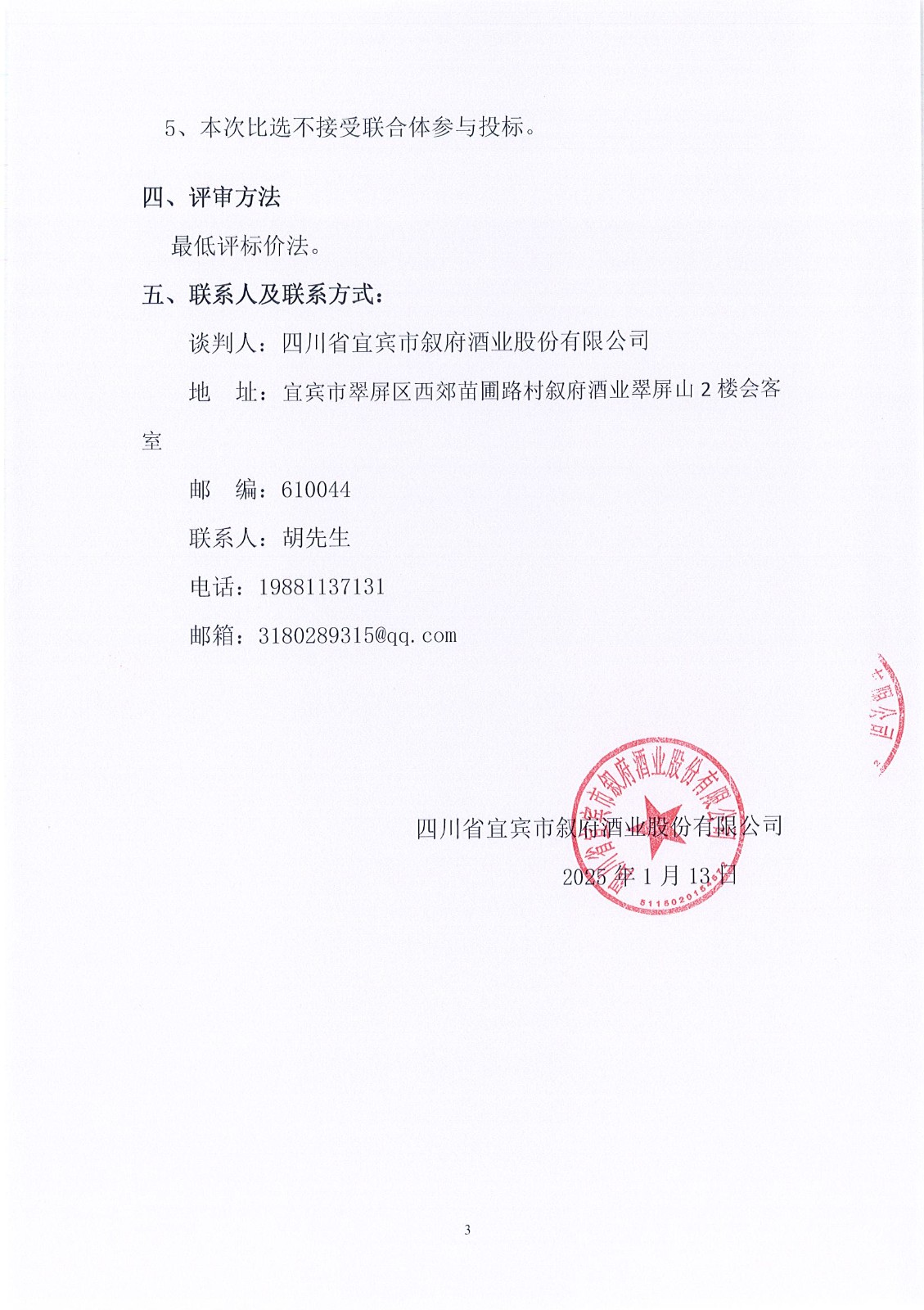 四川省敘府酒業(yè)銷(xiāo)售有限公司2024年四季度(藍標)敘府大曲氣模采購項目比選結果公示公告