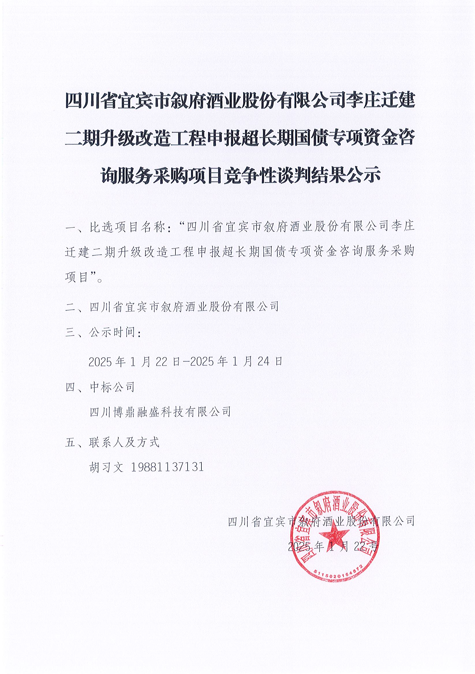 四川省敘府酒業(yè)銷(xiāo)售有限公司2025年春季糖酒會(huì )場(chǎng)地設計與制作搭建采購項目比選結果公示公告