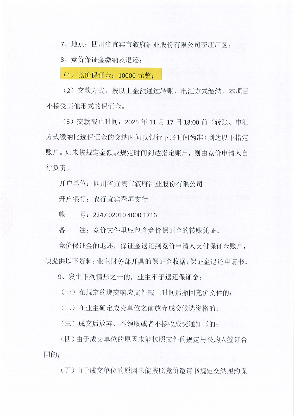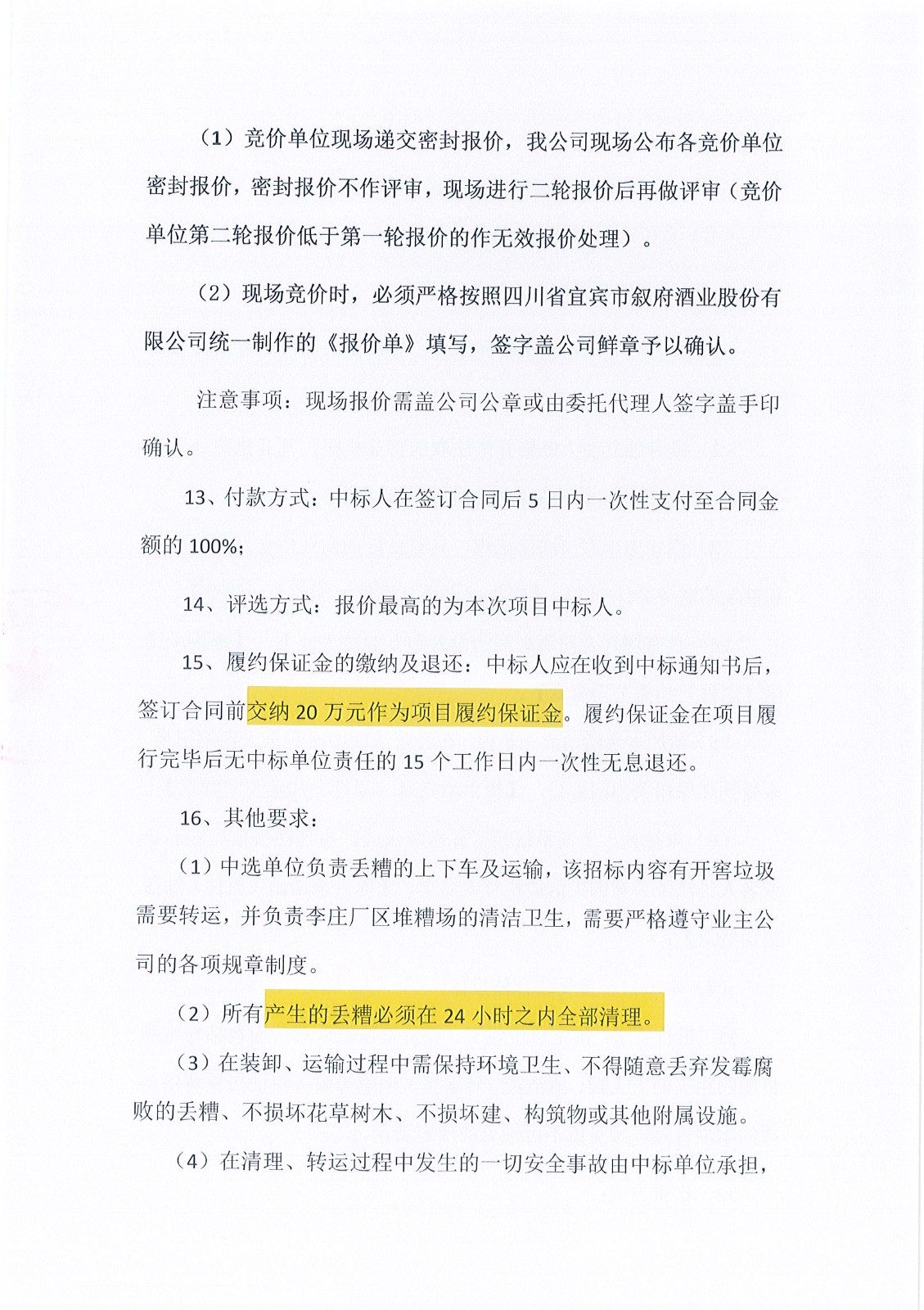 四川省宜賓市敘府酒業(yè)股份有限公司李莊廠(chǎng)區2025-2026年度丟糟出售項目競價(jià)結果公示公告