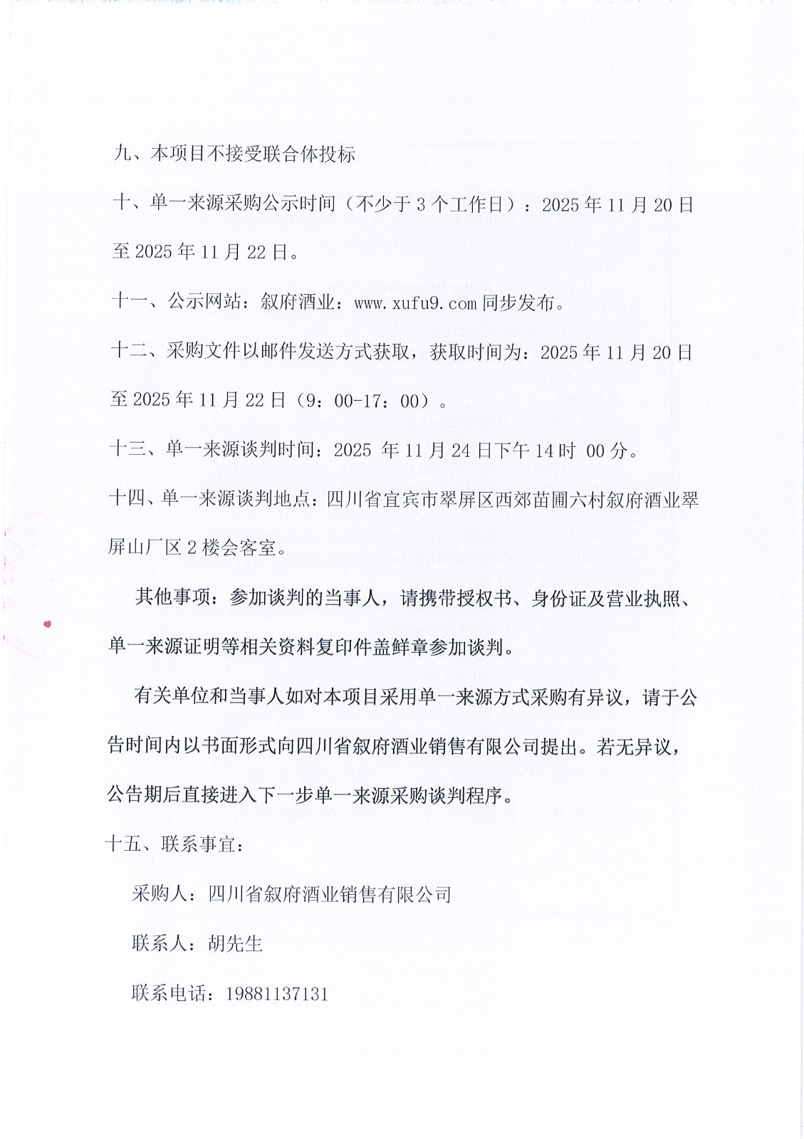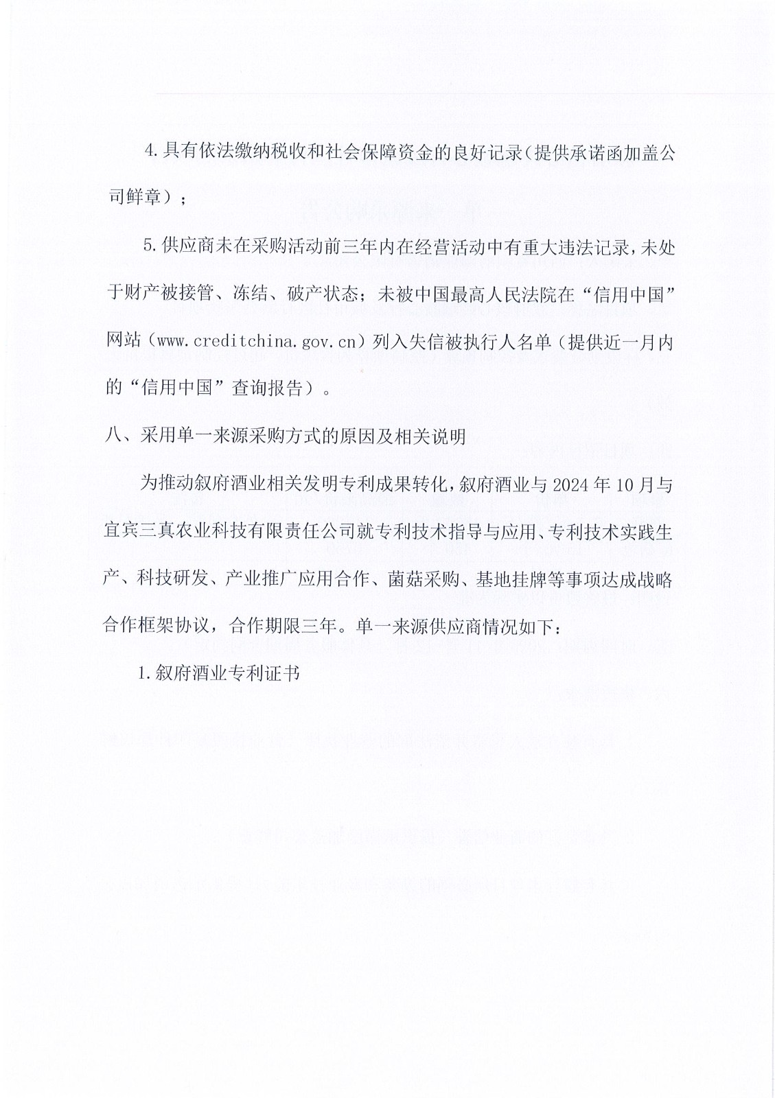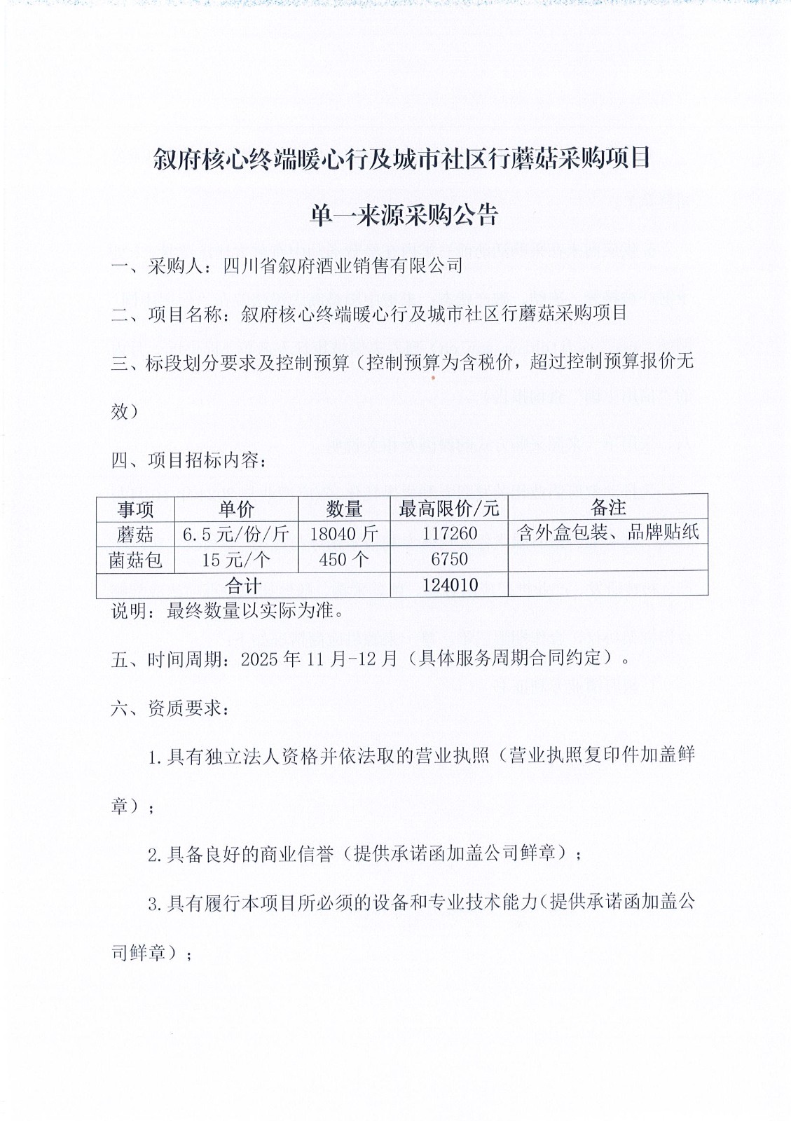 四川省敘府酒業(yè)銷(xiāo)售有限公司敘府核心終端暖心行及城市社區行、蘑菇單一來(lái)源采購項目中標結果公示公告