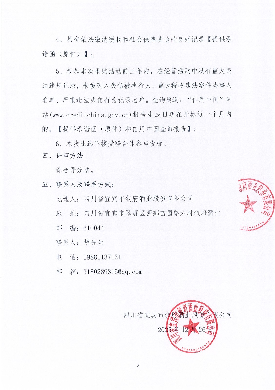 四川省宜賓市敘府酒業(yè)股份有限公司電動四輪車采購項目比選招標(biāo)公告