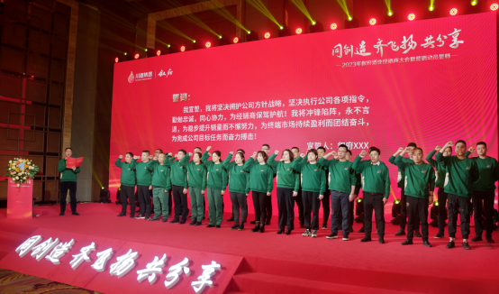 新的藍圖已然呈現(xiàn),戰(zhàn)鼓隨即擂響!“我宣誓,我將堅決擁護公司方針戰(zhàn)略……為穩(wěn)步提升銷量而不懈努力,為終端市場持續(xù)盈利而團結(jié)奮斗,為完成公司目標任務而奮力搏擊!”臺上,敘府營銷團隊聲聲誓詞直沖云霄;臺下,經(jīng)銷商掌聲雷動。沖刺的號角已經(jīng)吹響,敘府軍團已整裝待發(fā),他們將揚起奮進的風帆,譜寫敘府新華章。